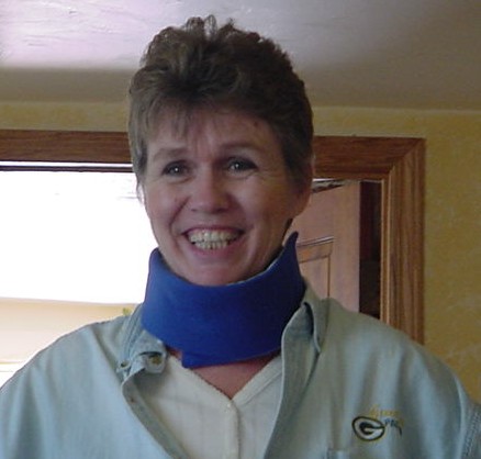 Sue Wenzel suffered the terrible fate two weeks before Christmas of a broken neck and now is quite a bit better and nearing completion of her rehabilitation period. Wenzel also known to friends and relatives as "Zeus" has done a lot of soul searching and even read the bible during her recuperation period. This all has lead to her taking a vow of non violence non aggression toward her fellow man. This of course will be a complete turn around of her former life style where certain individuals would shutter when they would see her van drive into their yard or parking lot. Wenzel known for her outspoken bursts of reality to foes says "I made a deal with God; if he let me heal I would never say a bad word about anyone again." So far Zeus has been better then her word, not mentioning one bad word about anyone while visiting THE KAT AND MICK REPORT Offices. And further more it was a known fact in the neighborhood that Zeus knew how to keep Christmas better then anyone wait, that was someone else who made a complete turn around, Scrooge I guess, never mind. While her vow of non aggression seems to be working she apparently has made no deal about cussing as that characteristic seems unchanged.
