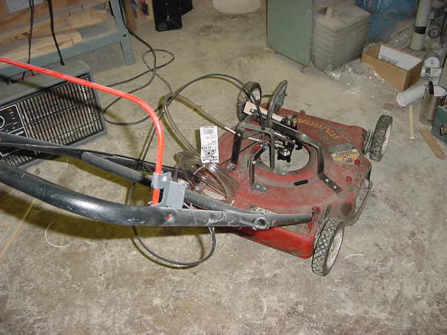 A discarded lawn mower deck was pressed into service and modified into a line painter which is still in use today