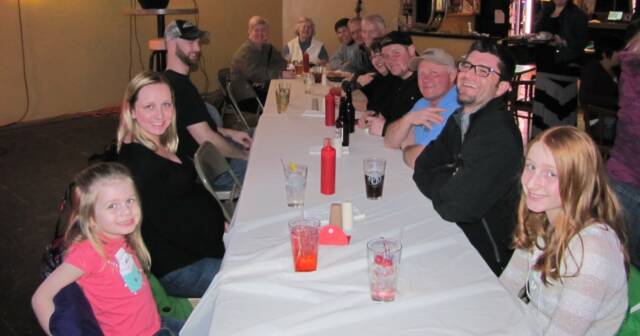Kat sits down with family and friends for fish at her Lamer's going away party at TNC's in De Pere, no Lamer's employees were invited